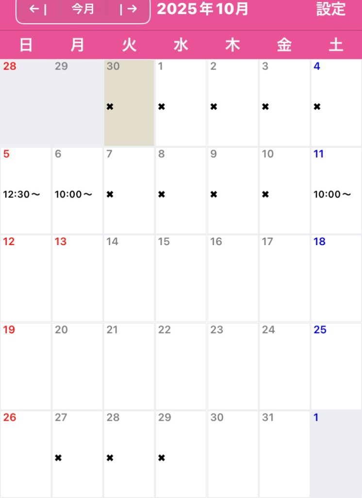 10月の営業日をお知らせいたします😌